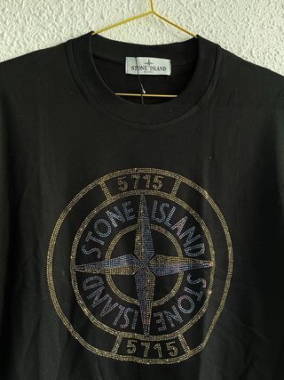 Camiseta de la marca Stone Island con un diseño llamativo. Muy buena calidad. - Detalle de pedrería en el logo. - Manga corta. - Cuello redondo.