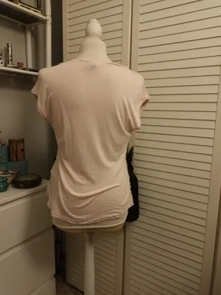 Camiseta de mujer en color rosa, ideal para cualquier ocasión. - Diseño sin mangas. - Tejido satinado con detalles laterales. - Corte moderno y favorecedor. - Con muy poco uso. - Talla : S