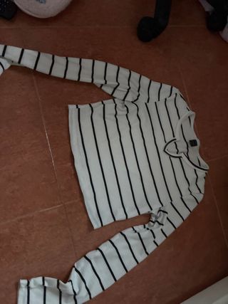 Top crop de Mango con un diseño de rayas verticales. Talla XS. Lo vendo por 10€. Está totalmente nuevo, sin estrenar (etiquetas incluidas). He dejado fotos de la prenda tomadas por mí y también fotos de la web con la modelo para que podáis ver cómo queda (están al final del todo) - Tejido ligero y transpirable. - Escote halter. - Cierre de atar en la espalda.