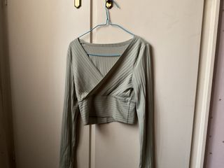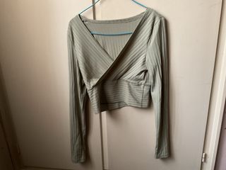 Camiseta de manga larga con un diseño cruzado y tejido acanalado. - Manga larga - Diseño cruzado - Tejido acanalado