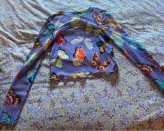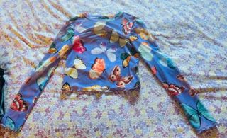Camiseta de manga larga con un estampado vibrante de mariposas. - Diseño de mariposas en todo el tejido. - Manga larga. - Cuello redondo.