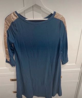 Elegante blusa con manga corta cubierta de lentejuelas. - Diseño con cuello redondo. - Lentejuelas brillantes por toda la prenda. - Acabado delicado en el borde.