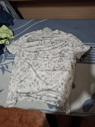 Camiseta de manga corta con un diseño moderno y llamativo. - Estampado jaspeado en blanco y gris. - Cuello redondo. - Banda con logo en las mangas.