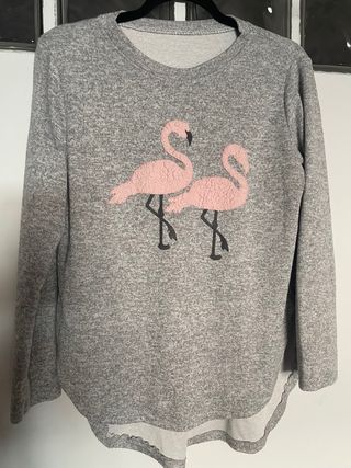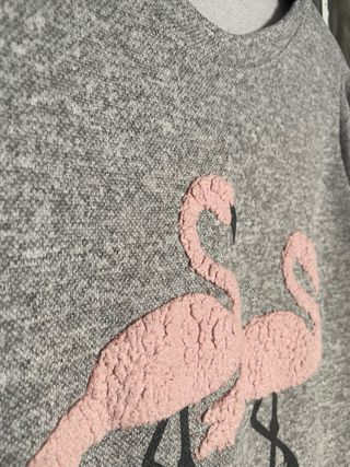 Camiseta gris con flamencos rosas