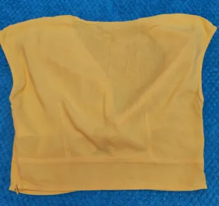 Top de lino con un diseño cruzado y anudado en la parte delantera con cremallera lateral. Talla M. Sin uso. - Tejido ligero y transpirable. - Manga corta. - Escote en V.