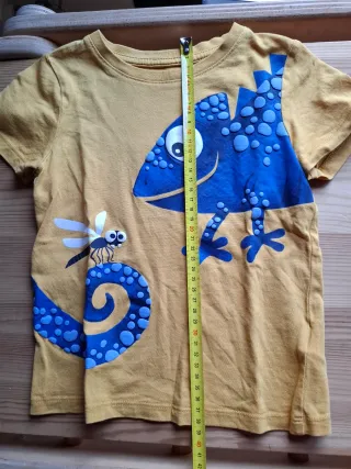 Conjunto de seis camisetas de manga corta para niños, perfectas para el día a día. Diseños divertidos y coloridos. - Camiseta amarilla con estampado de dinosaurio. C&a - Camiseta azul con estampado de dinosaurios.c&a - Camiseta azul claro. - Camiseta rosa. - Camiseta roja con texto Summer Vibing. - Camiseta mostaza con estampado de dinosaurio.