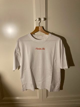 Camiseta blanca de Zara en talla M, Diseño con bordado en color naranja en el pecho y diseño por detrás.Corte recto, cómoda y fácil de combinar Usada pocas veces, en muy buen estado, sin manchas ni roturas Acepto ofertas