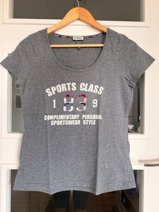 Camiseta de manga corta con un diseño deportivo y moderno. - Estampado frontal con texto SPORTS CLASS 1983 9 y COMPLIMENTARY PERSONAL SPORTSWEAR STYLE. - Cuello redondo. - Manga corta. - Comoda, practica y agradable al tacto