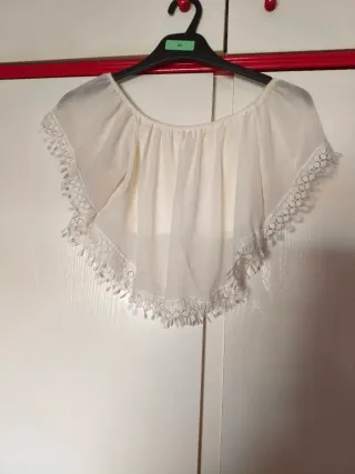 Blusa blanca escotada con encaje Talla M