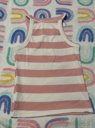 Top de tirantes con un diseño de rayas verticales. Es una prenda cómoda. Top sin marca, estilo casual y fresco. • Rayas rosa y blancas, con tirantes finos. • Ideal para verano El precio es negociable