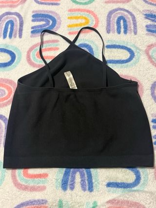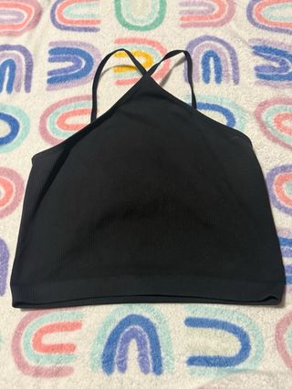 Top negro de verano con tirantes cruzados en la espalda. Es un top cómodo y versátil. - Tejido acanalado. - Diseño sin mangas. - Tirantes finos.