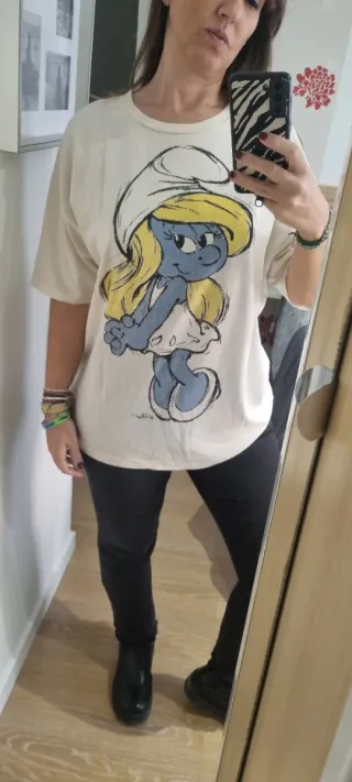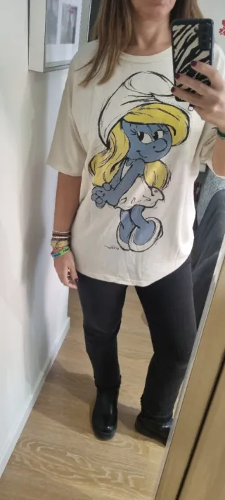 Camiseta con estampado de pitufa - Diseño divertido y original. - Manga corta. - Cuello redondo.