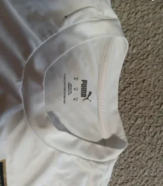Camiseta deportiva de la marca Puma en color blanco. Presenta un diseño moderno con detalles gráficos en los laterales. - Logo de Puma. - Escudo en el pecho. - Inscripción CHECK24 en el frontal.