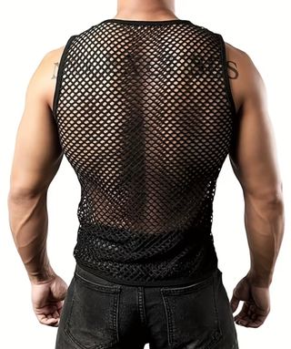 Camiseta de rejilla sin mangas con un diseño calado. - Tejido ligero y transpirable. - Cuello redondo. - Aberturas en los hombros.