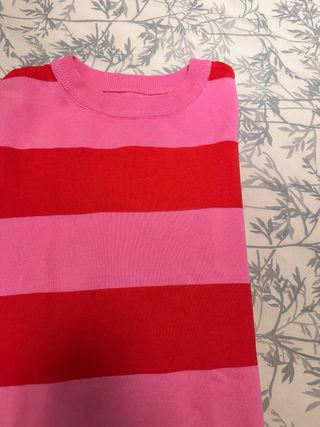 Camiseta de rayas horizontales en tonos rosa y rojo. Manga corta y cuello redondo. - Diseño a rayas. - Tejido de punto.