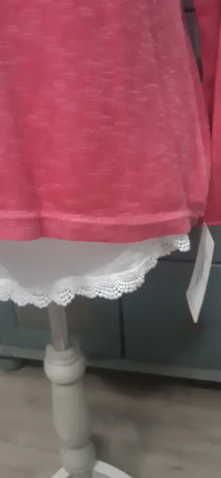 Camiseta de manga corta con un bonito estampado floral y un detalle central. - Diseño con flores rojas y blancas. - Estampado central con imagen. - Acabado con puntilla. Precio 3.50 euros no negociables ◾ No acepto ofertas ◾ Solo venta por envios ◾ Envio en menos de 24 horas después de su compra.