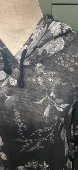 Camiseta con un diseño de doble efecto y capucha. - Detalle de cordones en la capucha. - Parte inferior con botones.