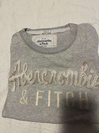 Camiseta de manga larga Abercrombie & Fitch en color gris. Presenta un diseño con el logo de la marca bordado en la parte delantera. - Logo de Abercrombie & Fitch bordado. - Cuello redondo. - Manga larga.