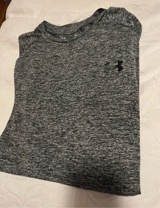Camiseta deportiva de manga corta con un diseño jaspeado en gris. Presenta el logo de la marca en el pecho. - Tejido técnico. - Cuello redondo.