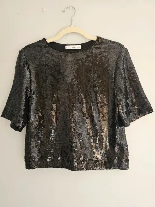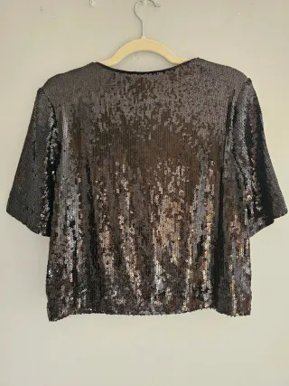 Top de lentejuelas de Mango Usado tan solo en un evento y esta en perfecto estado. Forro interior Talla XS (medidas en fotos)