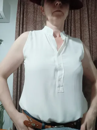 Blusa elegante sin mangas. - Cuello mao. - Cierre de botones. - Diseño liso.