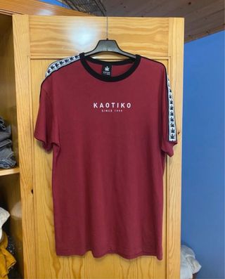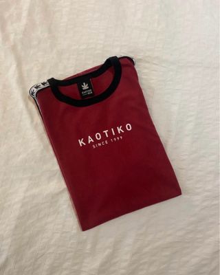 Camiseta de manga corta de la marca Kaotiko. - Cuello redondo con ribete negro. - Detalle de cinta con logo en los hombros. - Estampado frontal con el nombre de la marca y Since 1999.