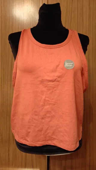 Camiseta de corte cropped en color naranja. - Tejido acanalado. - Cuello redondo. - Diseño sin mangas.