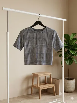 Camiseta de manga corta con estampado de cuadros. - Diseño de cuello redondo. - Tejido cómodo