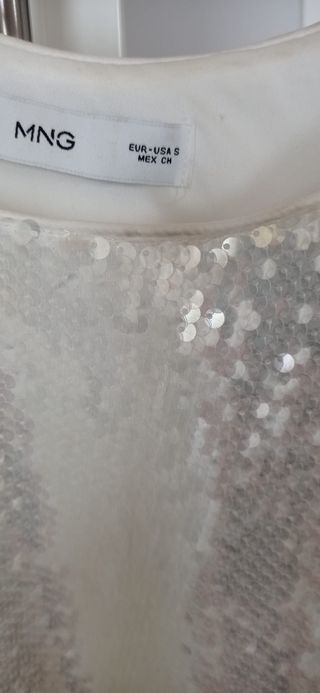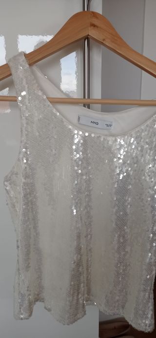Camiseta Mango Lentejuelas Fiesta Blanca Plateada