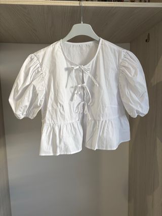 Camisa de Zara con un diseño muy favorecedor. - Manga abullonada. - Cierre con lazadas. - Volante en el bajo.