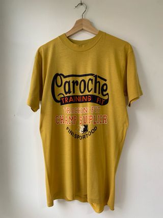 Camiseta vintage con estampado. - Diseño Caroche Training Fit Champ Suplier. - Estampado Finesportood con figura. - Cuello redondo y manga corta. tela desgastada