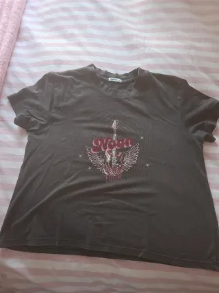 Camiseta de manga corta con un diseño gráfico llamativo. - Estampado frontal con guitarra y alas. - Detalle de texto Noon Tour. - Cuello redondo.