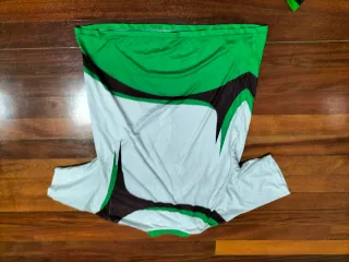 Camiseta de manga larga con un diseño llamativo. - Número grande verde con contorno blanco. - Texto Le Cruel sobre el número. - Rayas verdes en los puños de las mangas.