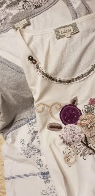 Pack de dos camisetas sin mangas de la marca Collie. Presentan un diseño con detalles bordados y apliques florales. - Cuello redondo. - Detalle de botones en el escote. - Acabado con puntilla y bordados. Sólo venta en pedido mínimo de 60€