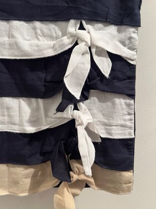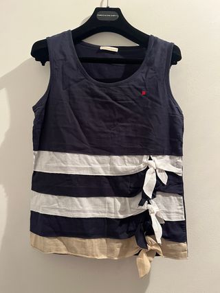 Camiseta sin mangas con un diseño a rayas y detalles de lazada. - Rayas en azul marino y blanco. - Detalle de lazadas en los laterales. - Base en color beige.