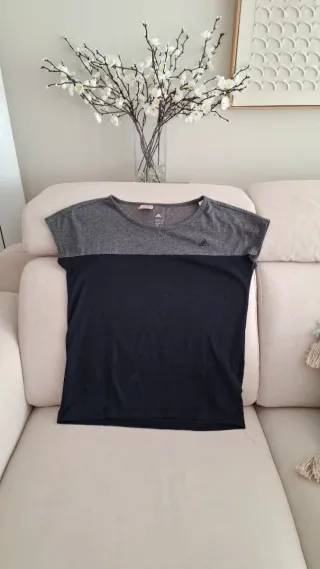 Camiseta de manga corta de Adidas, perfecta para actividades deportivas o para el día a día. Diseño bicolor con la parte superior en gris y la inferior en negro. Tejido climalite - Parte superior gris jaspeado. - Parte inferior negra. - Logo de Adidas en la parte delantera.