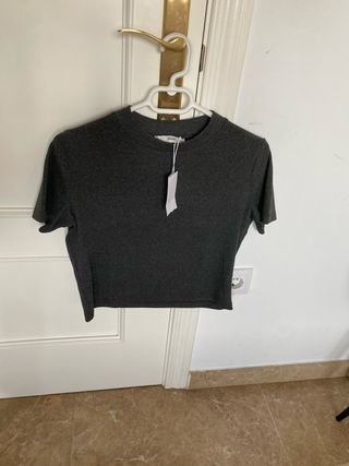 Camiseta Zara gris mujer manga larga