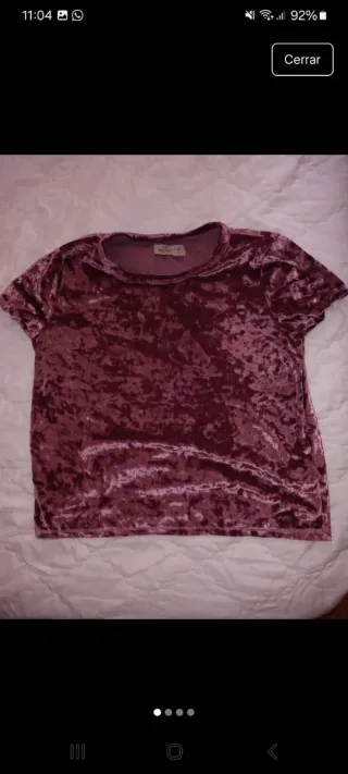 Camiseta de manga corta con un tacto suave y brillante. - Material: Terciopelo. - Color: Rosa.