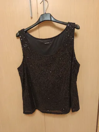 Elegante camiseta sin mangas con lentejuelas. Talla 42 - Diseño con lentejuelas. - Acabado brillante.