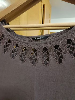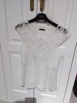 Elegante camisa de Massimo Dutti, perfecta para ocasiones especiales. - Diseño en color blanco. - Detalle de puntadas y entredós en la parte frontal.