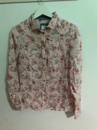 Elegante camisa de seda con un estampado floral vibrante.. - Diseño de manga larga. - Cuello redondo con abertura. - Cierre de botones. Nueva. El estampado es muy original y favorece mucho puesta. Me ha quedado pequeña.