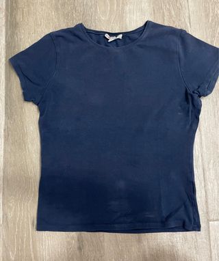 Preciosa camiseta azul marino, talla S. Es una prenda basica y cómoda, ideal para el día a día. Esta en perfecto estsdo. Hago descuento por lotes y envios por la app