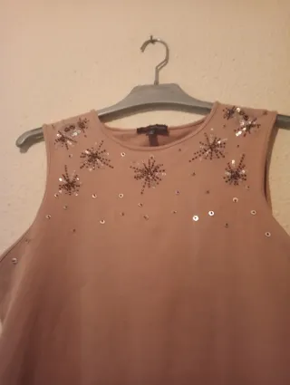 Camiseta sin mangas con un diseño de pedrería en la parte superior. - Detalle de estrellas y lentejuelas. - Cuello redondo.