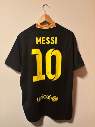 Camiseta de fútbol del FC Barcelona de la temporada 2011/2012, con el dorsal número 10 de Messi. Talla L. Original. En perfecto estado - Diseño a rayas rojas y azules. - Logo de UNICEF en la parte frontal. - Escudo del FC Barcelona en la nuca.