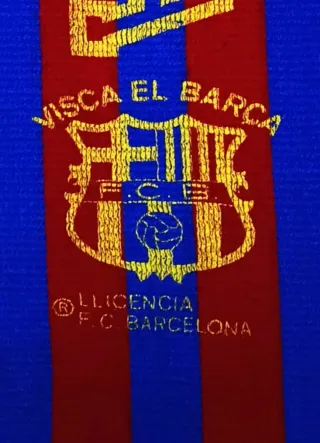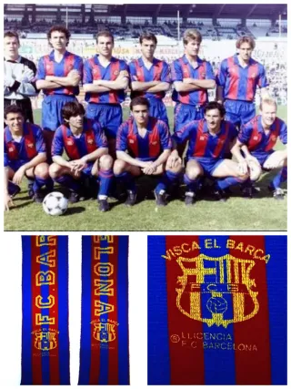 Bufanda del BARÇA dels anys 80, versió clàssica de 2 franjes GRANA en fons BLAU, F.C. BARCELONA escrit en tipografia universitària i serigrafiada amb pintura groga de l'època, escuts ANTICS F.C.B. als extrems i LLICÈNCIA EN CATALÀ Merxandatge oficial del Barça Producte registrat amb Llicència FCB En bon estat Més articles FCB al meu perfil FCB scarf Wembley Cruyff Dream Team Stoichkov Koeman Laudrup Romario Meyba Maradona Schuster Migueli Julio Alberto Messi Unzué Bakero Busquets Camp Nou blaugrana vintage Catalunya samarreta camiseta vintage Almogàvers retro Futbol Copa d'Europa senyera Camp Nou Som i serem Més que un club
