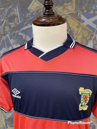 Hermosa camiseta vintage de la seleccion Escocesa de futbol, segunda equipacion de la temporada 1999/2000, talle M en perfecto estado. CAMISETA ABSOLUTAMENTE ORIGINAL Y DE LA EPOCA. - Escudo del equipo en el pecho. - Cuello tipo polo con detalles blancos. - Mangas cortas con ribetes. Camiseta de fútbol, maglia calcio, trikot,maglietta, voetbal shirt, football shirt, camisola de futebol, maillot football, messi, Ronaldo, Argentina, España, match worn, rare shirt, Italia, champions league