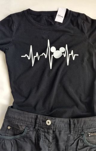Camiseta comprada en Disneyland Paris, es una talla M. Muy poco usada. La silueta de Mickey tiene brillos.