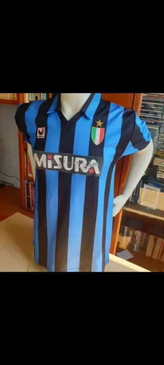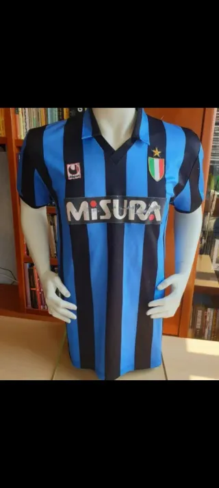 Camiseta de fútbol retro del Inter de Milán. - Diseño clásico con rayas verticales. - Detalles del club y patrocinador. - Tejido cómodo y transpirable.