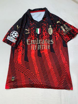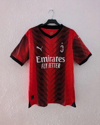 Preciosa camiseta del AC Milan, temporada 2024/25 edicion jugador, de la marca Puma. Esta en excelentes condiciones. - Es de color rojo y negro. - Luce el logo de Emirates. - Talla: m
