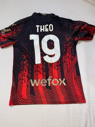 Preciosa camiseta del AC Milán, temporada 2022. Luce el nombre y número de Theo Hernández (19). - Es una equipación de local. - La camiseta está en muy buen estado. ‼️Hay mas artículos como este en mi perfil ‼️